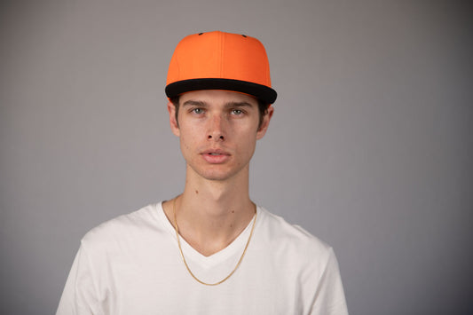 6-Panel Snapback (Flat Bill) — Orange / Black Bill — Dozen Pack