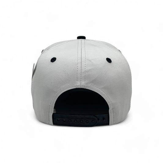 5-Panel Snapback (Curved Bill) — Light Grey / Black Bill — Dozen Pack