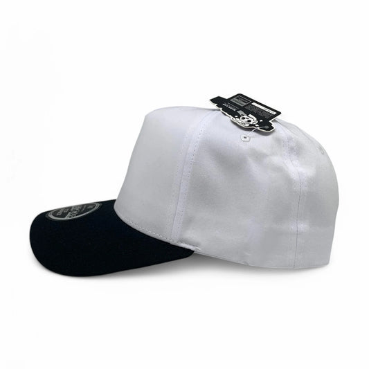 5-Panel Snapback (Curved Bill) — White / Black Bill — Dozen Pack