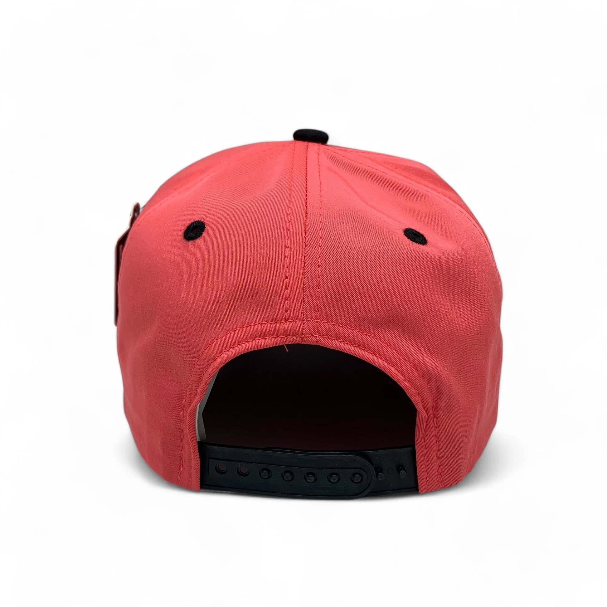 5-Panel Snapback (Curved Bill) — Coral / Black Bill — Dozen Pack