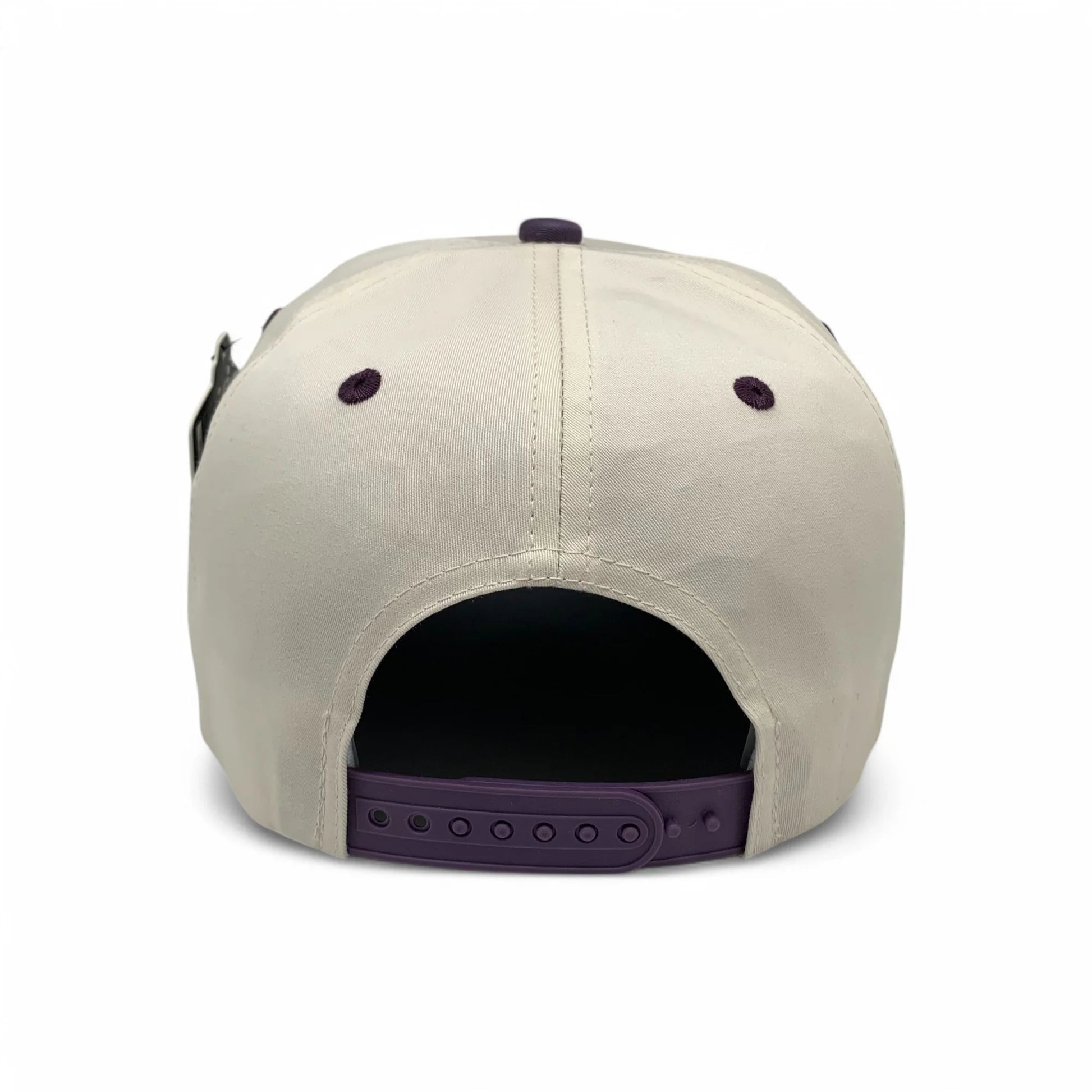 5-Panel Snapback (Curved Bill) — Natural / Dark Purple Bill — Dozen Pack
