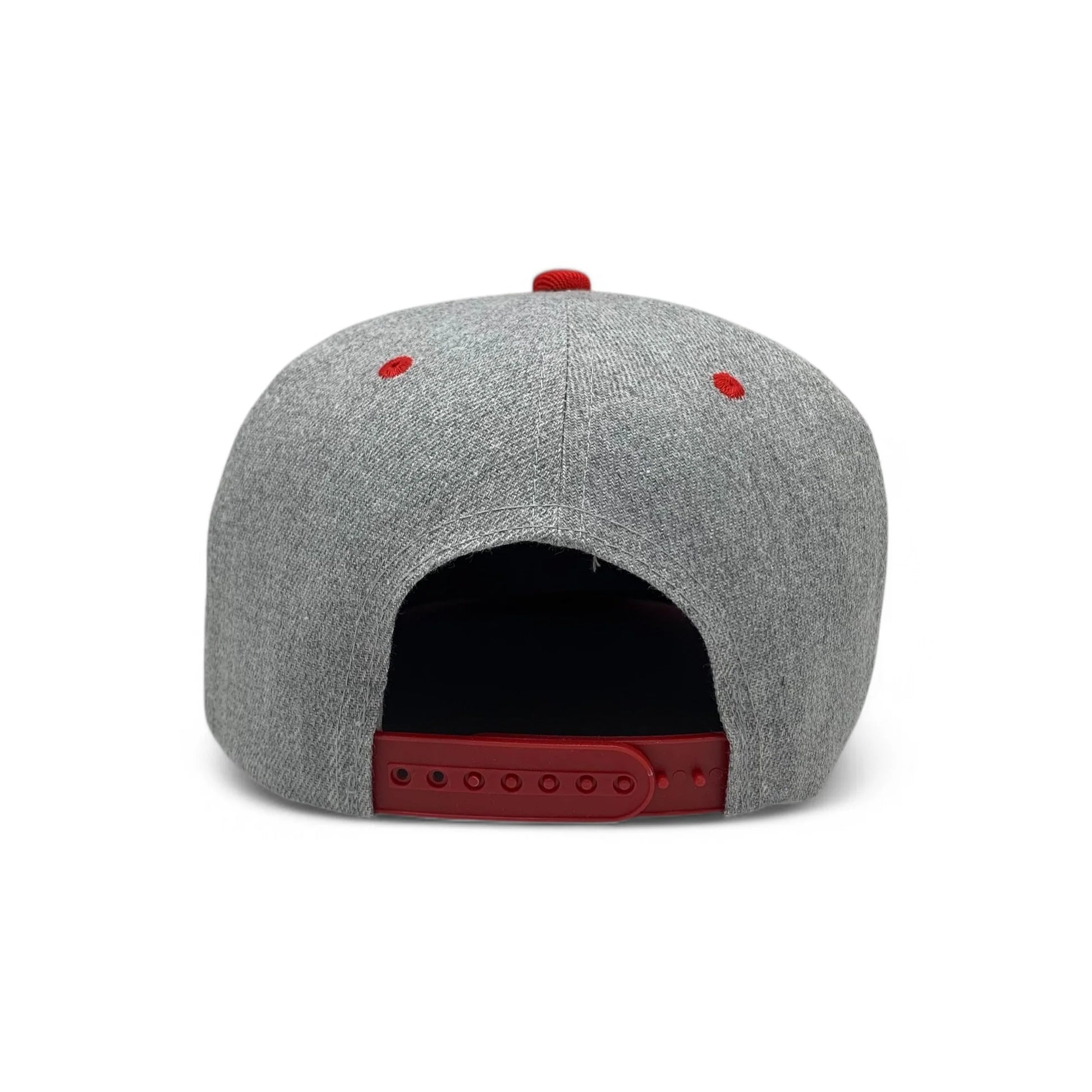 6-Panel Snapback (Flat Bill) — Heather Grey / Red Bill — Dozen Pack